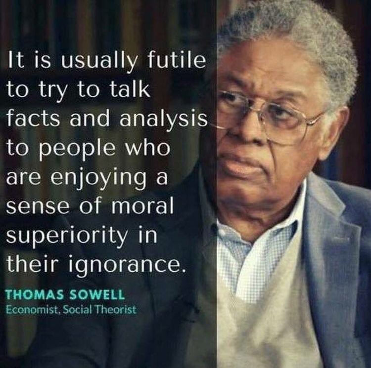 Thomas Sowell is right when he calls out at imbeciles who enjoy a sense of moral superiority in their ignorance. Accountability and moral fortitude is not part of their vocabulary.