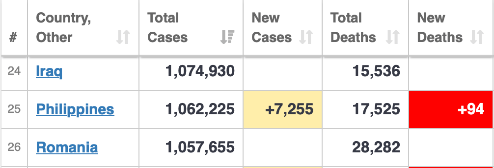 The first Monday of May kicks off with 7,255 new cases, a relatively lower number than the previous Mondays. While we may be seeing slightly lower cases, it was enough to push us past Romania to secure the 25th rank in the world with most number of COVID-19 cases. Romania is currently averaging 1,800 cases a day, while 24th rank Iraq is averaging around 6,500 new daily cases.