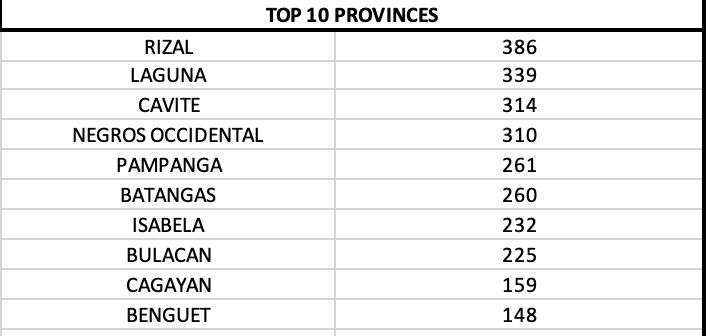 Three provinces in CALABARZON were among the top three haulers for the day, on a provincial level – Rizal, Laguna and Cavite.