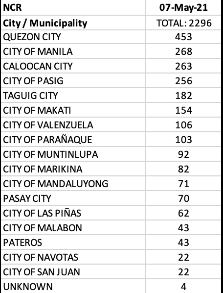 Twelve of the 17 LGUs in NCR were among the top twenty cities with most cases in the country. Quezon City continued to lead among cities in the Philippines with 453 new cases today.