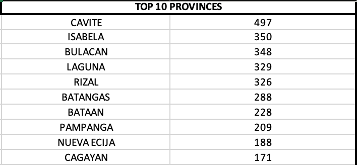 The province of Cavite, Isabela and Bulacan were the top three contributors to today’s numbers.