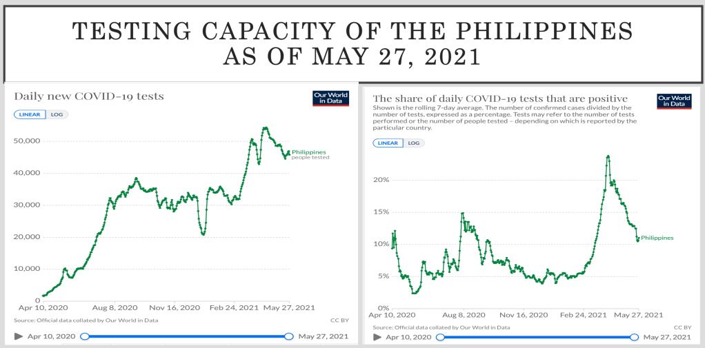 The past two months saw a decline in cases but not enough to reach pre-surge levels. And as the numbers took a downward trajectory, the past few days saw a quick U turn in number of cases. Notice also the confirmed deaths for the months of March to May 28, 2021. While the total deaths are a little less than 21,000 to date, the last 3 months alone accounted for more than 40% of all deaths reported since the beginning of the pandemic in the country.