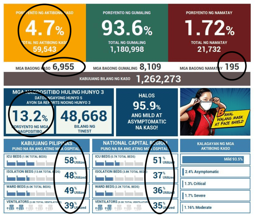 While today’s new cases test the 6000 margin, it’s like a fire sale. No, we are not testing the 6K mark. We’re still at the 7K lane as the Health Agency announces 6,955 new cases today based on reports of close to 50K tests last June 3. Two labs did not submit reports to be included in todays cases, hence, the actual numbers today would put us most likely along the 7K margin. Again. The positivity rate remains stubborn at over 13%. I cannot reiterate that we are not testing and tracing enough, particularly in regions outside of the NCR where there is an obvious lack in testing, tracing, isolation and quarantine.