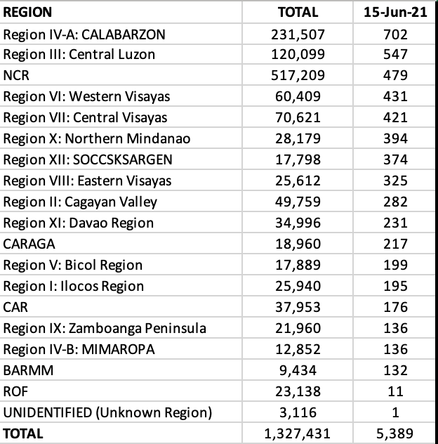 While there were relatively lower cases today than the past days of the week, all regions continued to report triple digits. CALABARZON remained on top with the NCR down to third rank. Most of the regions with higher cases are still from the VisMin area.