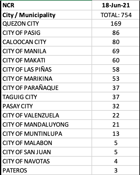 Back in the NCR, it is not surprising that Quezon City continued to lead with triple digit cases. The good news is that four cities/municipality had only single digits – Malabon, San Juan, Navotas and Pateros. Six of 17 LGUs in NCR are among the top twenty cities with highest cases.