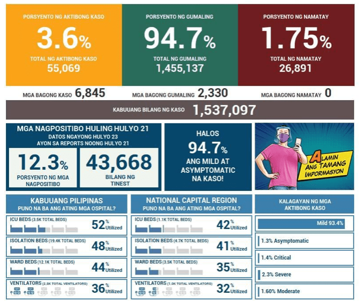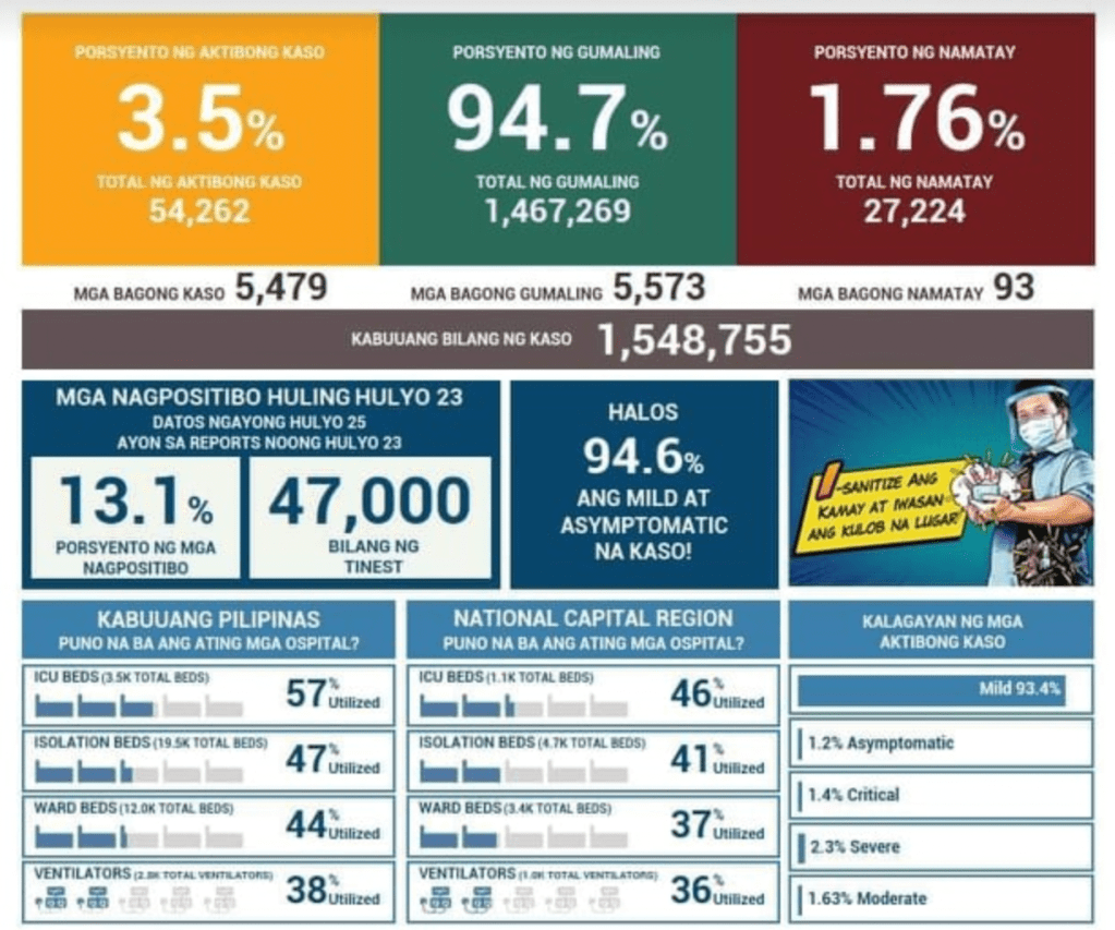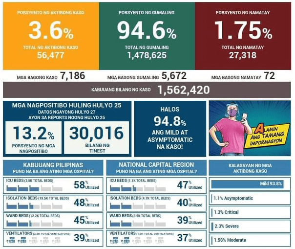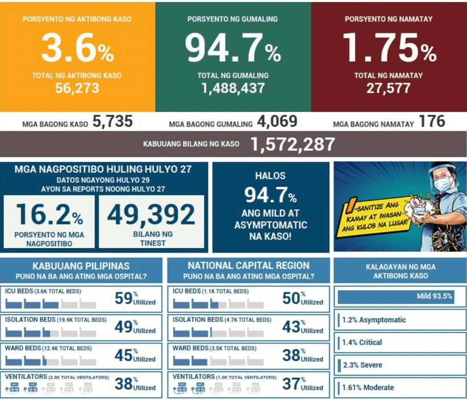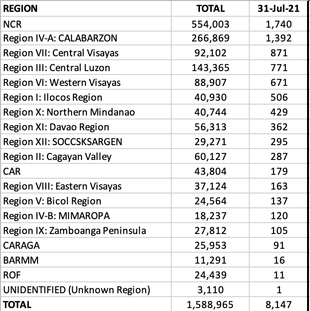The last day of the July has the Health Agency reporting 8,147 new cases from a high of almost 55,000 tests done last July 29. Sadly, the positivity rate is still high at 14.7%. With a few more recoveries than new cases, the active cases are still more than 60,000 today.