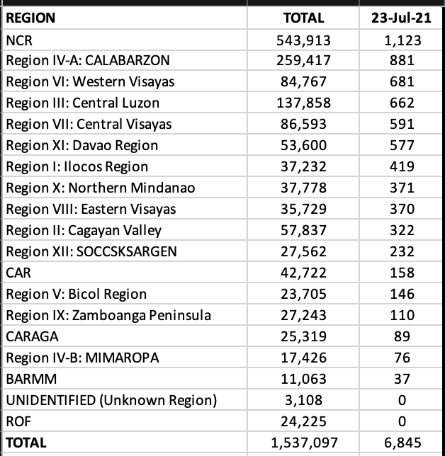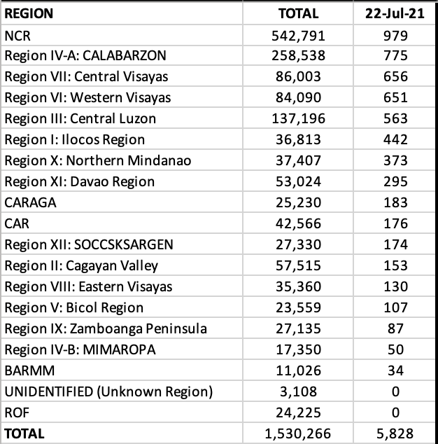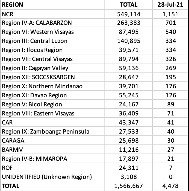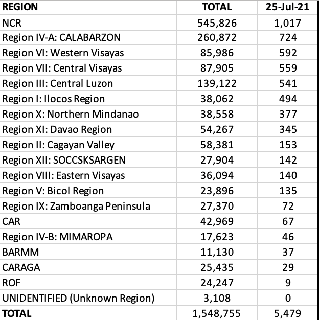 And NCR adds more cases today as the new cases now mount to close to 1,750. CALABARZON and Central Visayas in second and third, respectively. Central Luzon, Western Visayas, and Ilocos Region had more than 500 new cases each region.