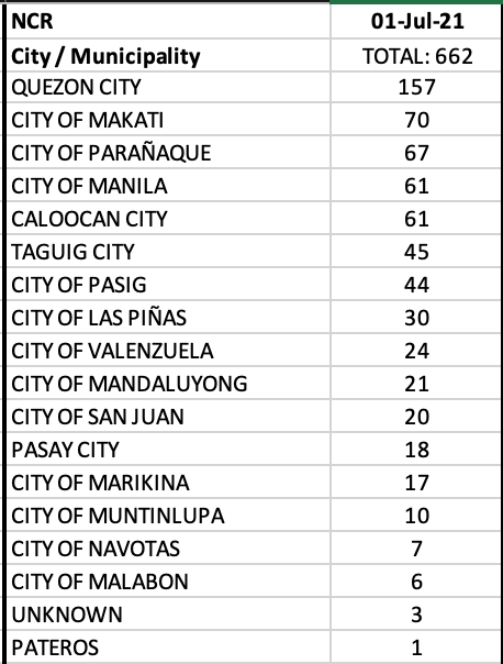 Cases are slightly up in the NCR, with Quezon City maintaining the lead. Seven of 17 LGUs in Mega Manila were among the top twenty cities with most cases.
