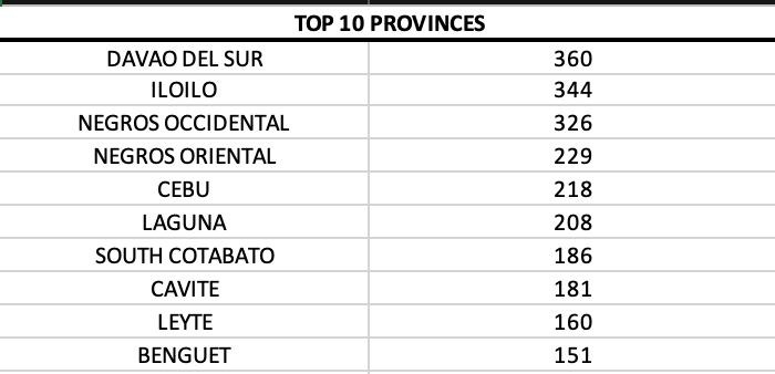 The provinces that dominated the haul today were Davao del Sur, Iloilo Province and Negros Occidental. Which is also why their respective capitals were among the top five cities in the country with the most cases.