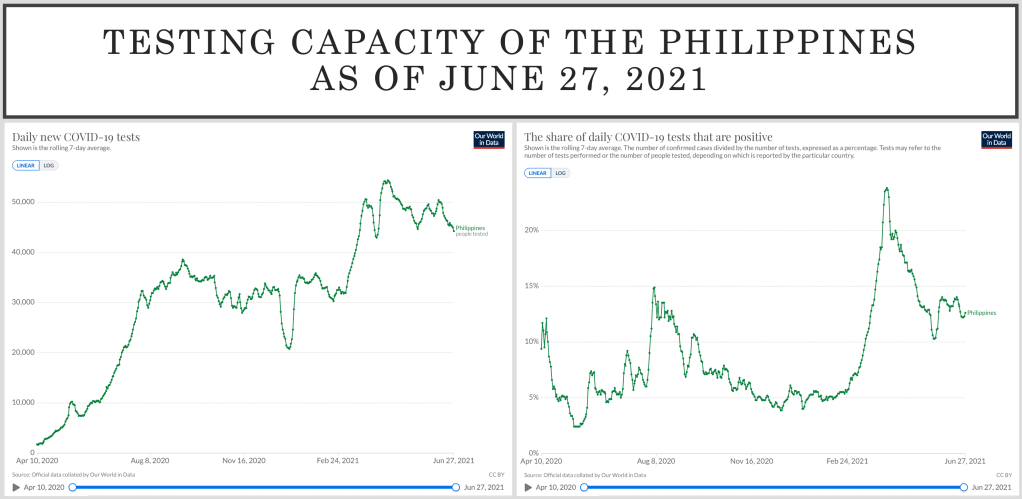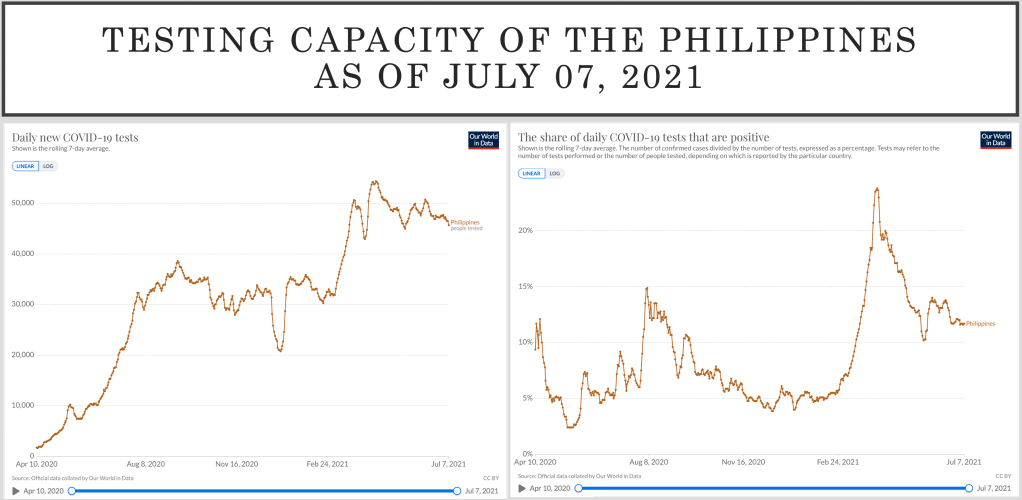 The testing capacity of the country is not stellar, as the reports of COVID-19 cases are dependent on the Health Agency insisting to count only those that are positive by RT-PCR. While it is not prohibited to use rapid antigen test kits that have been approved by the Philippines Food and Drug Administration, it is not encouraged as well. Only those tested with RT-PCR are counted, traced and subjected to isolation in facilities in the country. The Philippine Health Insurance agency (PhilHealth) also reimburses only those that get tested by RT-PCR and are positive. With the positivity rate still way above even 10% daily (which is a far cry fro the pre-surge levels where the positivity rated were 4-6% on the average), the Philippines is definitely NOT testing enough. This puts us in a precarious position because only through adequate testing (including patients who are not symptomatic but have significant exposure and considered close contacts or are immunized to some degree) can we do significant contact tracing. Containment of the outbreak will need extensive testing, tracing and isolation.