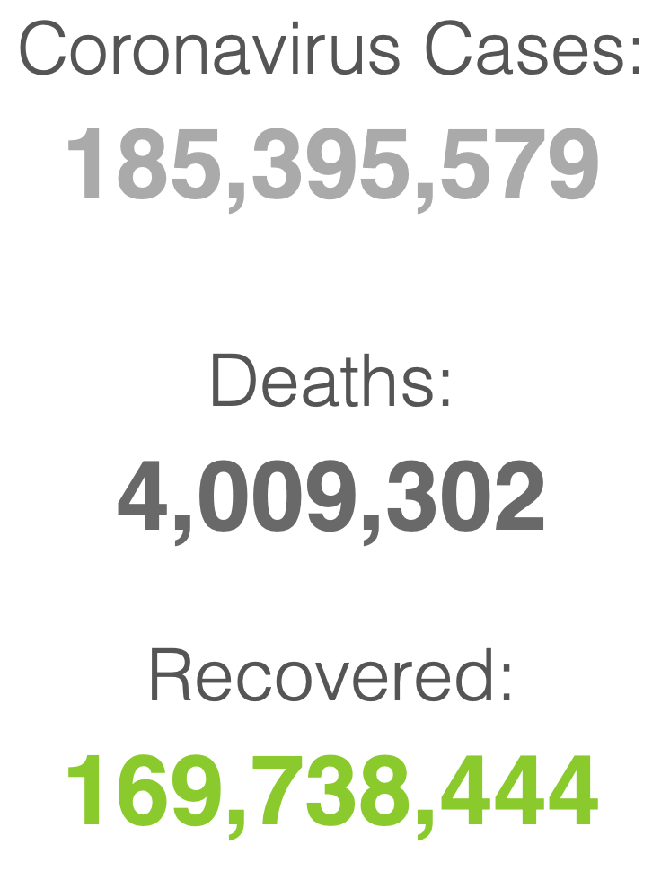 It’s been awhile since I’ve tracked the global numbers. As of July 7, 2021, the world has now passed the 4M mark for deaths attributed to COVID-19. And as the other countries begin to reopen their economies, the variants pose a threat to future surges, particularly in countries that do not have adequate vaccine supply.