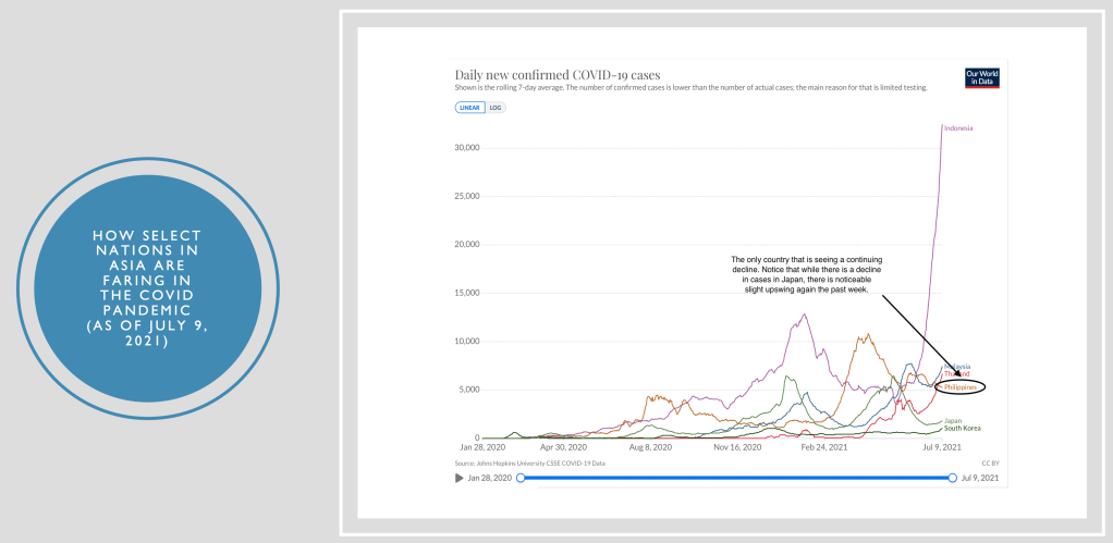 In Asia, where we are seeing a resurgence in cases, particularly in Indonesia, Malaysia and Thailand, the Philippines is performing much better in controlling the outbreak as we see a very slow and steady decline. We need to vaccinate quickly because of emergence of variants among the unvaccinated. If we continue to vaccinate at a slow pace, the emergence of variants can derail the over-all benefit of the vaccines.