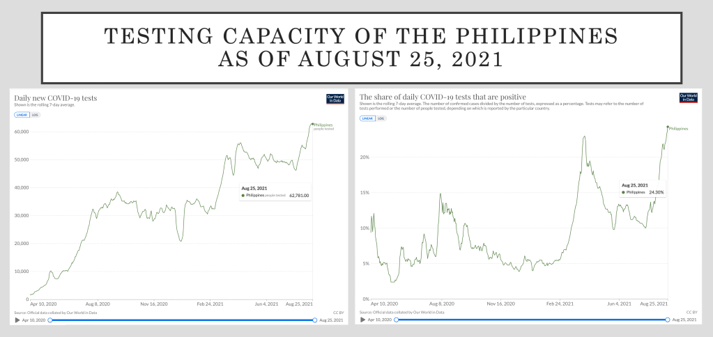 There were more than 65,000 tests done last August 20, but in spite of the slightly higher testing done, the positive cases are still past 25%. One in four tested that day tested positive.