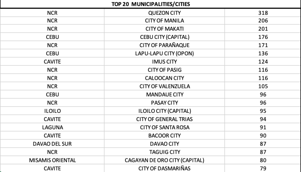 On a provincial level, while Cebu continued to lead, it was Cavite and Laguna that made up the chunk of cases in the CALABARZON area with close to 1,000 cases.