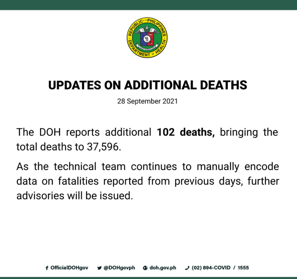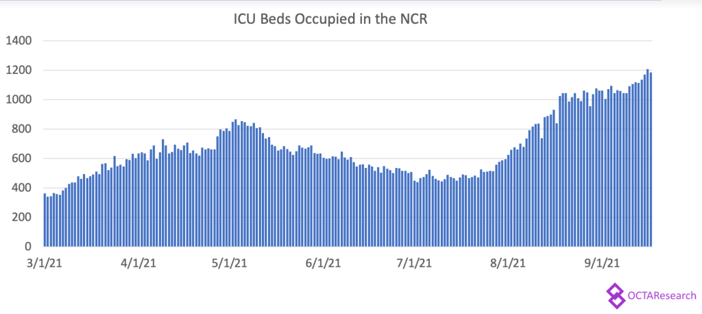 The data drop from the DoH was used in calculating for the four indicators on the situation in the National Capital Region. The indicators are ADAR (incidence rate), R (infection), Hospital Bed utilization and ICU utilization rate.