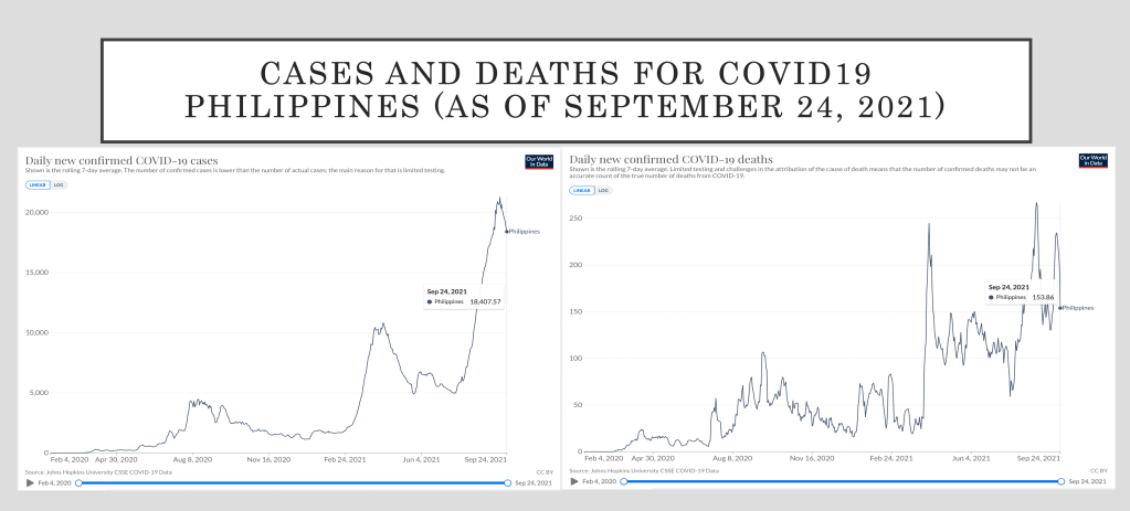 The Philippines is now seeing a declining trend in cases as seen in the infographic data below. While the deaths are also lower now, this is erratic as there has been some problem with the recording of the deaths in the national database system and should be able to reconcile this soon.