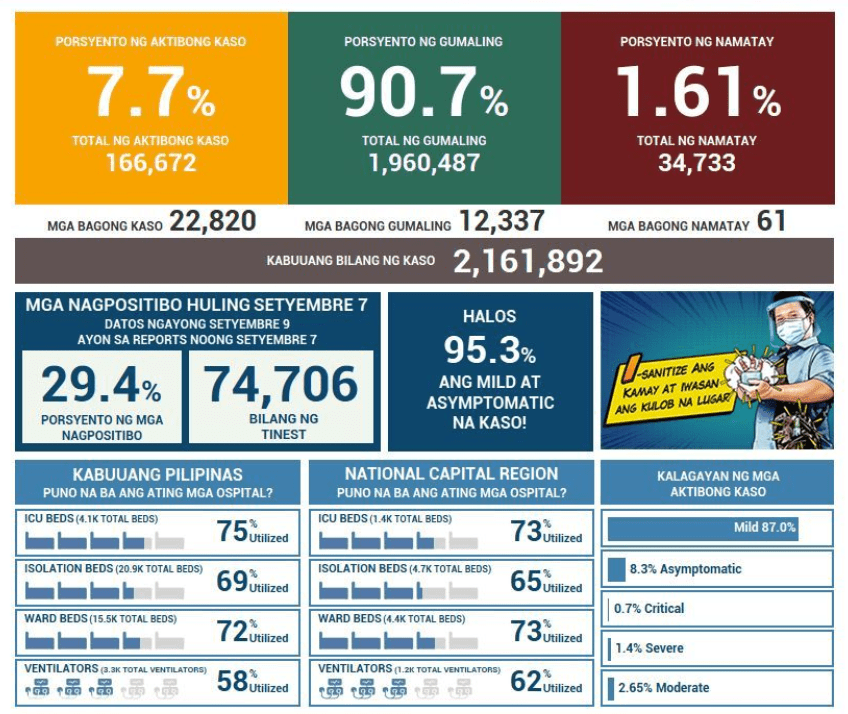 With more than 73,000 tests done last September 4, 2021, we also record a new high in positivity rate at 28.8% or almost 1 in 3 to 4 patients tested, tested positive.