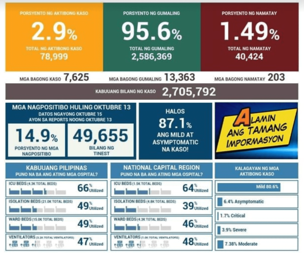 Total tests done last October 13 was close to 50,000 with a positivity of 14.9%.