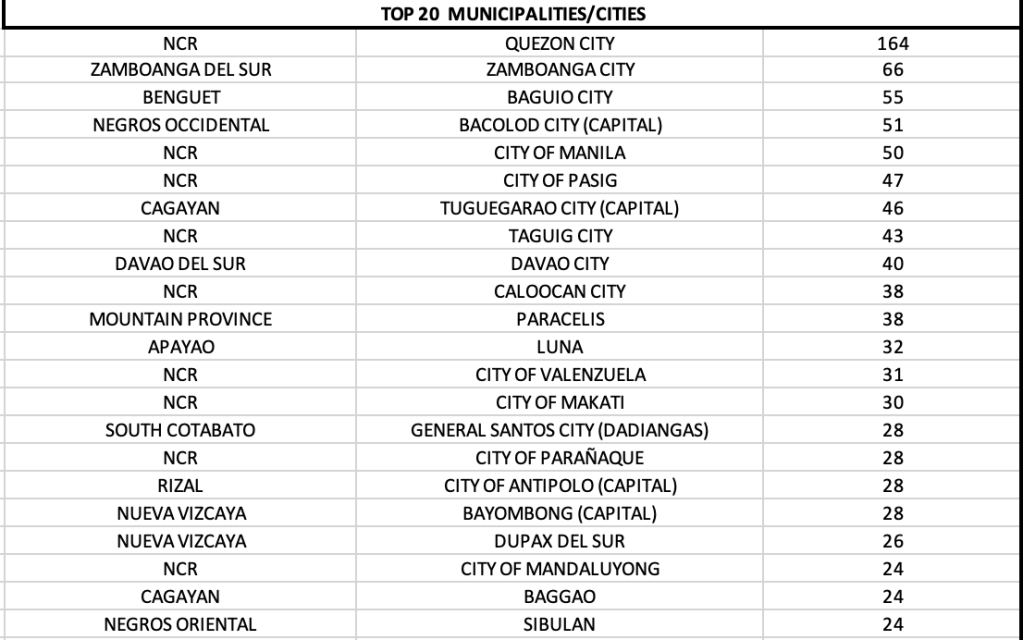 On a city/municipality level, Quezon City kept the lead. As a matter of fact, Quezon City alone accounted for almost 30% of the total cases in NCR. It was also the only LGU in the country that continuously reports triple digit cases. Nine of 17 LGUs in NCR were in the top twenty. The striking data today showed that 7 LGUs in Northern Luzon were among the top 20.