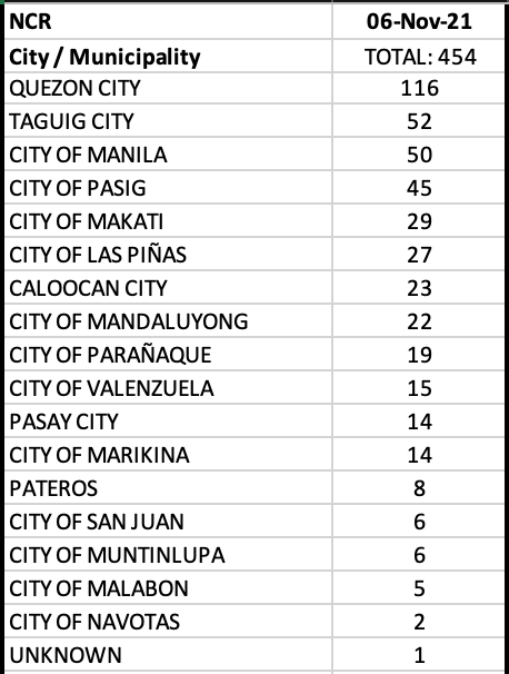 At the level of the LGU, Quezon City was the only city or municipality that reported triple digits. As a matter of fact, its 116 cases accounted for 26% of the cases in the National Capital Region – the biggest contributor to the share of cases in Mega Manila. Nine of 17 LGUs in the top 20 list are from NCR. The fewest cases on an LGU level was 19 today. Which means that if your city or municipality reports more than 19 cases, you’re most likely to be in the top 20 list. In the top ten LGUs, 4 were from NCR while 6 were from LGUs outside of NCR. Five LGUs in the top 20 are from Northern Luzon.