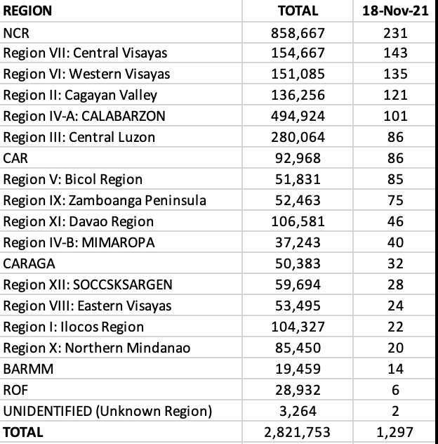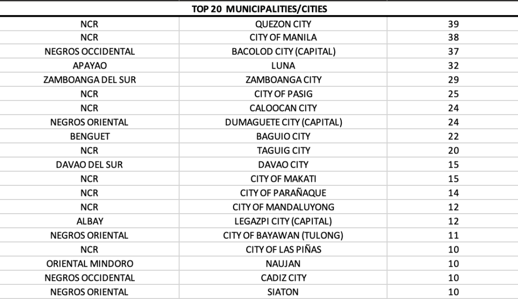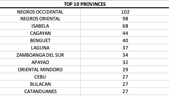The ranking in the Visayas was primarily led by the provinces of Negros Oriental and Occidental, with Negros Occidental reporting triple digit cases.
