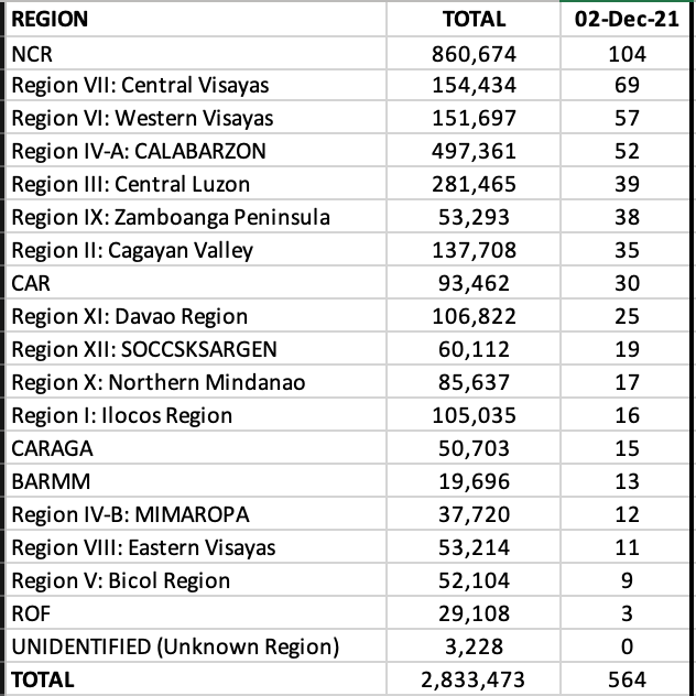The Health Agency reports 564 new cases today based on 34,918 tests done last November 30 with 1.7% positivity rate. This is one of the lowest (if not the lowest) positivity rates the country has recorded. This also drops the 7-day average to 600 cases/day. Almost half of the active cases are moderate to critical.