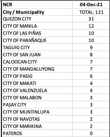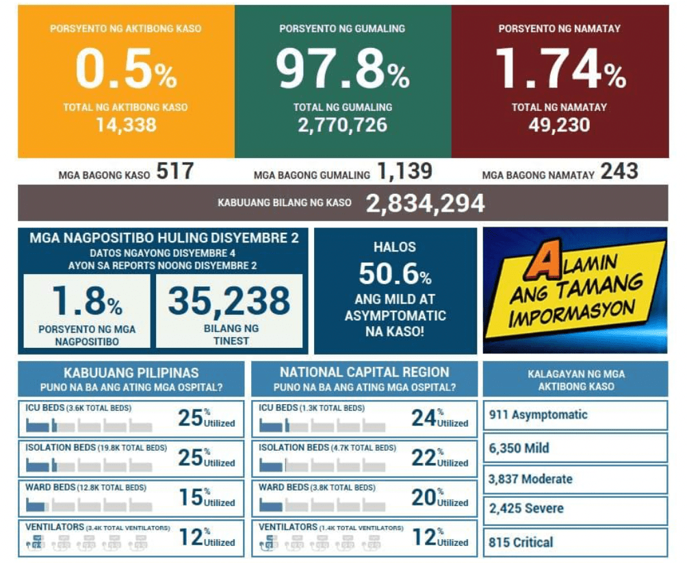 The Philippines is seeing a 7-day average of 514 new daily cases and 138 daily deaths reported as of December 3, 2021. This brings the weekend to a lower daily average than the previous weeks in terms of cases, but the backlog in outcomes among those moderate to critically ill needs to be reconciled sooner and announced in one blast.