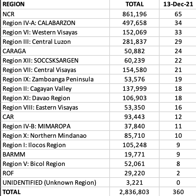 The week before Christmas week begins on a good note with 360 new cases based on close to 36,000 tests done last December 11 with a 1.1% positivity rate. The active cases continue to decline but is still relatively high as the backlog among these remain unresolved. This accounts for the close to 55% active cases falling under moderate to critical category.