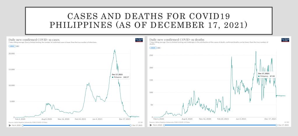 As Christmas fast approaches, every nook and cranny is filled with revelers and the Philippines, which is making headway with the pandemic is in a semi-festive mood. After all, this Christmas is unlike last year where we all hunkered down in fear and where the numbers were up at more than 1250 new daily cases.