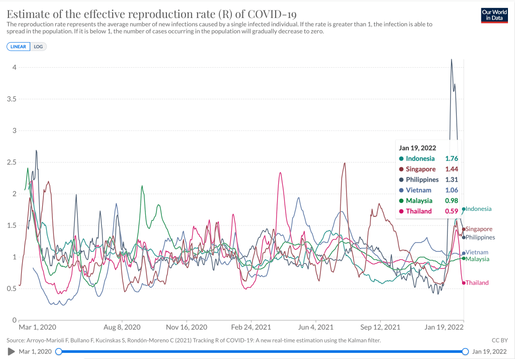 Elsewhere in Southeast Asia, the Rt of Indonesia is up at 1.76, and while it still is seeing relatively lower cases than other countries in the region, the data shows a trend towards an uptick in cases as it continued to report four digits over the past week, with 3,205 new cases yesterday. With the R continuing in an upward trajectory, as it braces for an Omicron surge. We need to monitor for this ongoing development in the fourth most populous nation in the world.