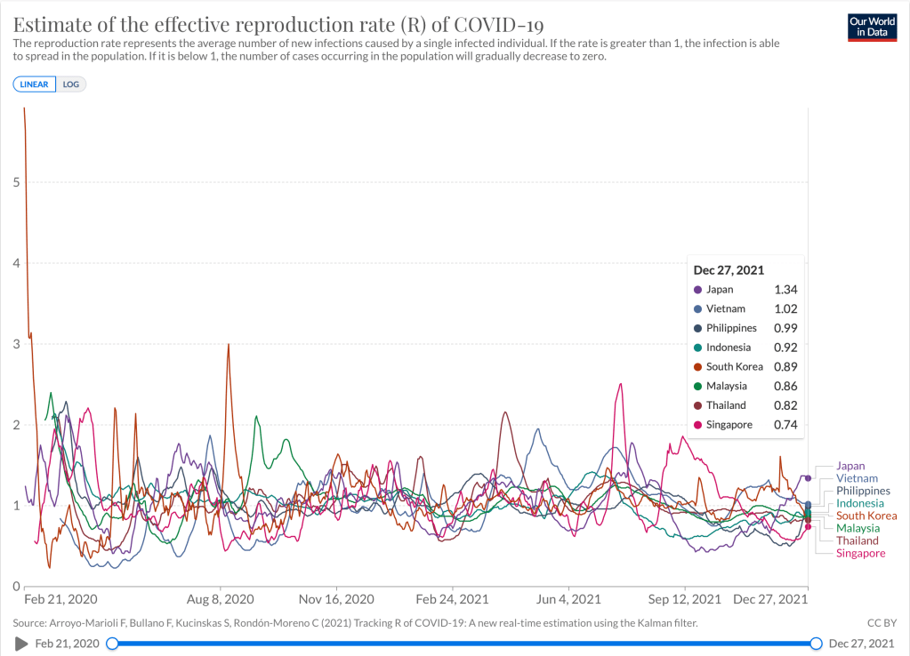 While the effective reproduction rate as of December 27 shows the increase in Rt of the Philippines, it jumped from lowest Rt last week to third highest in select Asian countries as of this date. With the increase in cases, the country will most likely see a rapid increase in reproduction quicker than expected.