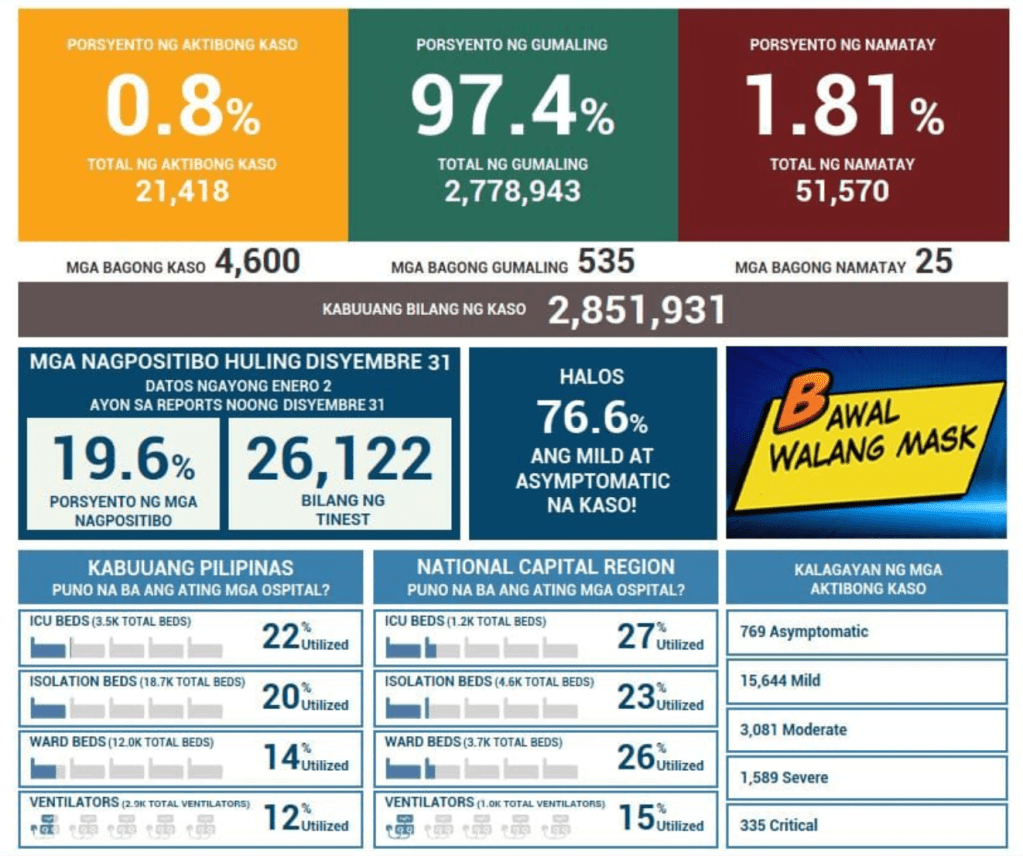 The holiday rush, and the combined forces of delta and omicron changed the landscape of the pandemic in the Philippines within a 7 day period. The exponential rise in cases is a major cause for concern because of its potential effect on both the healthcare system and economy.