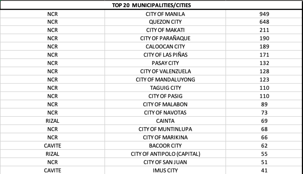 The NCR continued to see rising cases as the region accounted for 72% of the total cases today with the City of Manila accounting for almost 30% of the share of cases in NCR. Cases in CALABARZON and Central Luzon are also up.