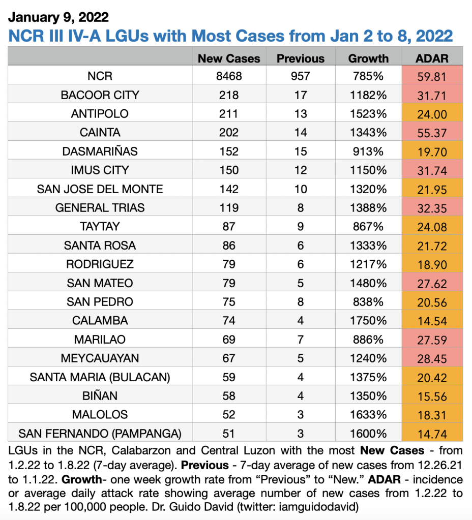 Based on information from OCTA Fellow, Professor Guido David, here’s the march of how several LGUs in the NCR, Regions IVA and III have seen their cases grow.