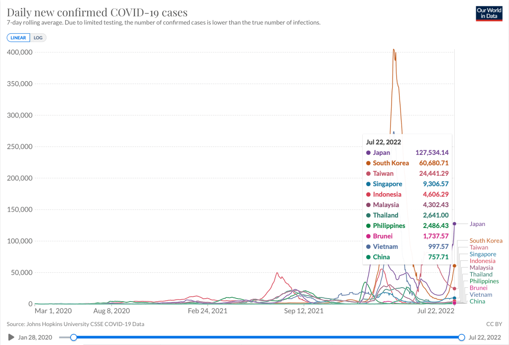 While the Philippines is recording an increase in cases, the number of cases among the East Asian nations are rising as well. This phenomenon is expected as the world experiences the spread of BA.5 and BA.2.75 sub variants of omicron.
