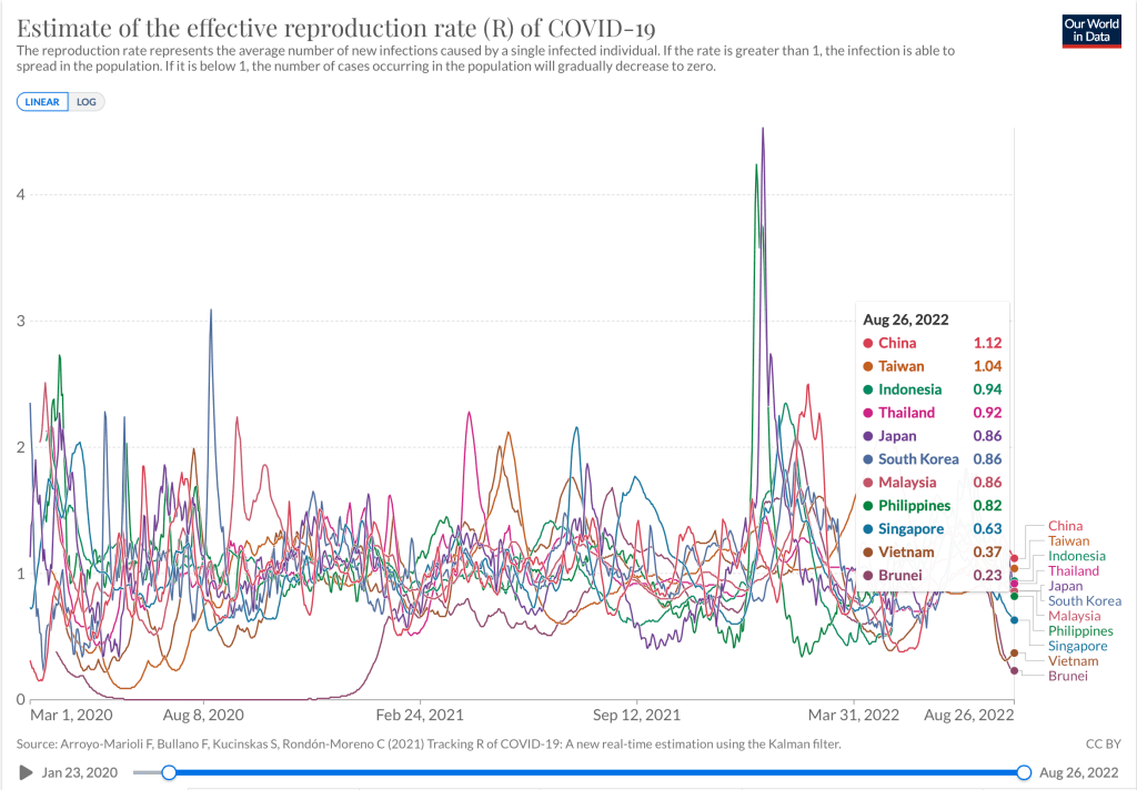 Effective reproduction rate is lower in the East Asia region, which means that we should be seeing lower cases again in the region this coming week. The Rt of the Philippines is now down to 0.82 (+/- 0.05), but this can drastically change with the opening of face-to-face classes.