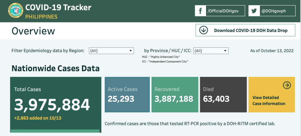 The Health Agency announces 102 added deaths and 2883 new cases with 14.9% positivity rate. Problem here is not knowing if these added deaths were late or fresh and we will not know until next Monday. In the meantime NCR bags 1188 new cases today (still under reported).