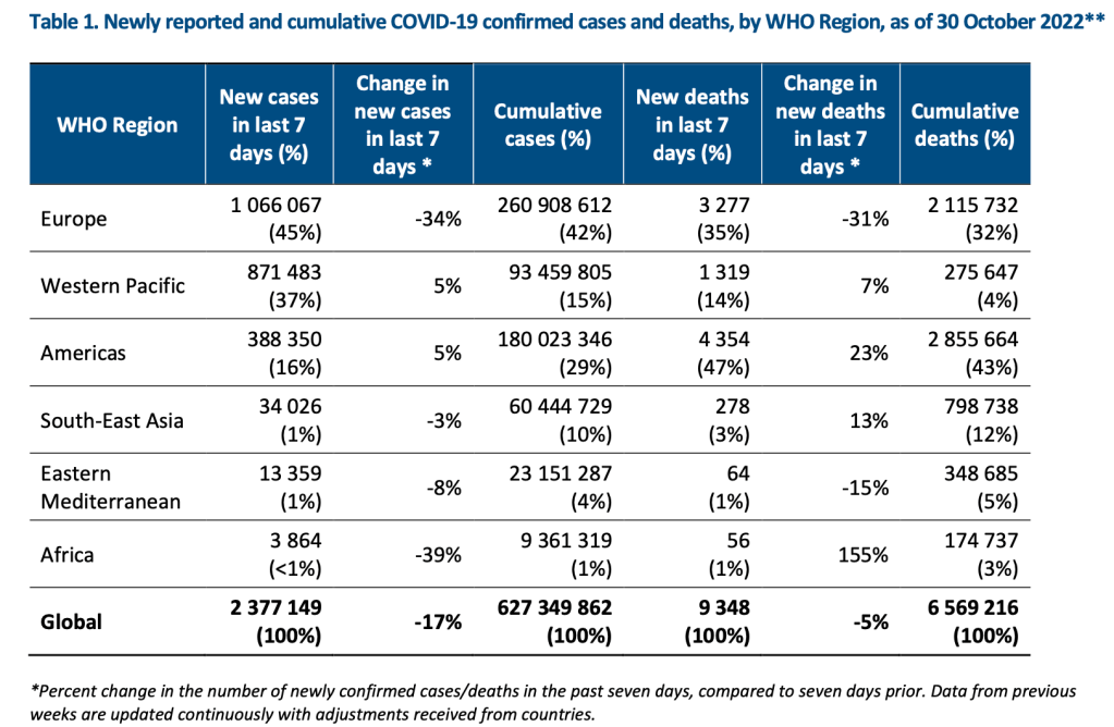 THE GLOBAL DATA AS OF 30 OCTOBER 2022 (NOVEMBER 2, ED. 116 PUBLICATION, WHO)