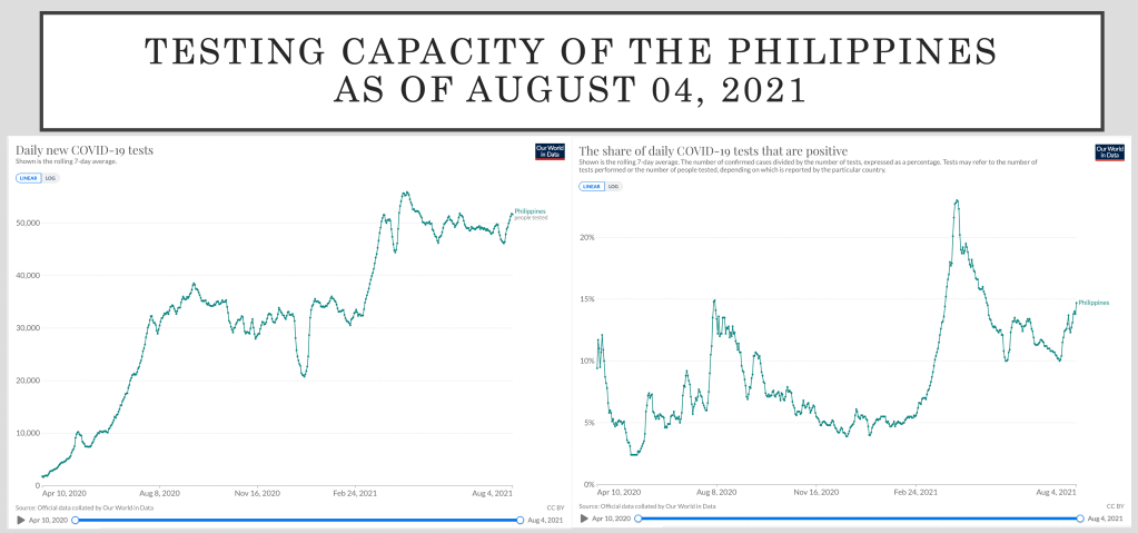 It used to be called low Tuesdays. That’s because the data announced on Tuesdays are from tests done on a Sunday. Last August 8, only 33,070 tests were done. Driving a whopping 21.9% positivity rate! That meant, more than 1 in every 5 people tested, tested positive.