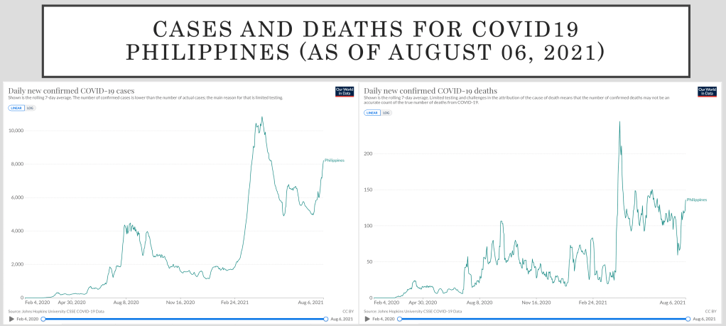 How did the province of Cebu end up with this data? Well let’s start off with the fact that 903 of the reported cases on August 8 were from specimen collection dates August 4-6, 2021. Four hundred and forty five (445) were from August 1-3, one was from July 31 and 1 all the way back from February 11. The right question to ask is WHY is the data (and reporting) in such disarray? The Health Agency needs to provide more transparency on how it collects data and what it announces for the day, because all projections and modeling highly depend on the data the health agency gathers and reports.