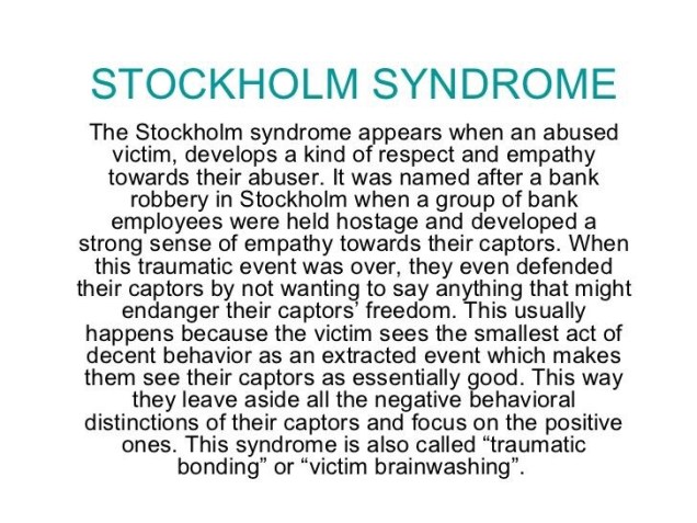 They have a term for that in psychology/psychiatry – it’s called Stockholm Syndrome.